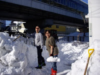 Thursday afternoon I walked Okaasan to the subway station and the shopping area and we wandered around the supermarket together - I yet again learned that a good housewife does not just choose ANY old cabbage...cut ones are bad, small ones are bad, anything with a mark on it is bad, one's with the wrong kind of green leaves are bad...