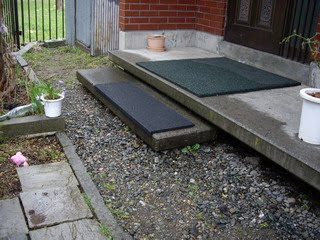 Okaasan has never been great with steps and stairs, she kind of hops up them and uses a rail for stairs if there is one.