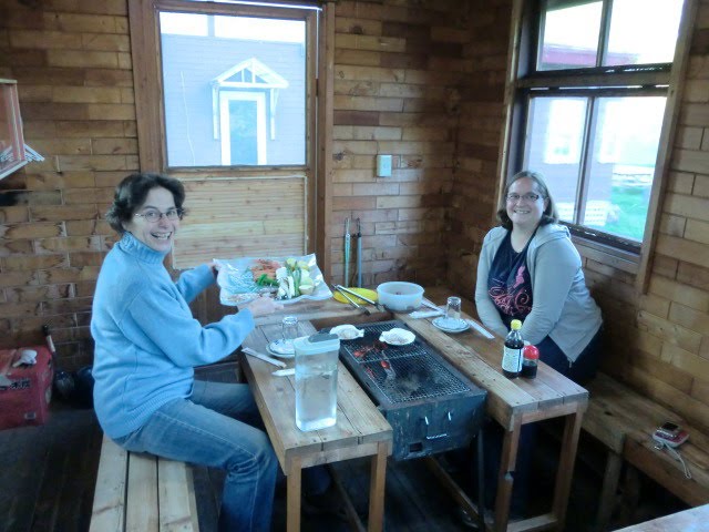 Oh - yes. Dinner please. Heated up the soup, rice. Cooked the fish. Uncovered the salad and tofu plate etc. Served her.