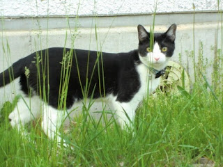 We escort them on the adventures outside - keeping them in sight as they explore our garden, Hoshiba-san's garden, the long grass under the raised subway line, the street, the trash station, the apartment complex bike shed....