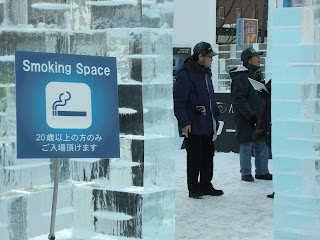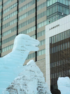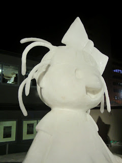 Managed to get Okaasan out in daylight and the three of us went downtown and walked Odori Park looking at snow statues and eating...eating...eating...at all the food stalls. The statue/food balance is tipping in favor of this being renamed The Sapporo Food Festival.