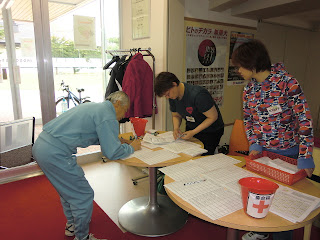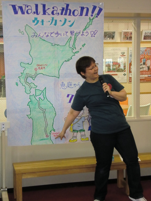 Anonymous - NO! We didn't actually walk to Miyagi!!! It was in an indoor sports track in Eniwa in Hokkaido, and we walked round and round the track and counted the km - everyone in the day walked a total of 619 km which is the same as Eniwa to Miyagi maybe!!