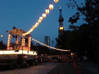 The beer garden has one more day to go...and in Odori Park there are preparations for public Bon Dancing, the final end-of-summer event before we get into autumn.