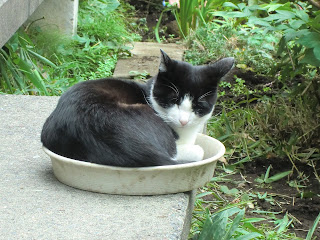 And then I came home to Oyomesan life again - the burned pans in the kitchen where Okaasan had heated up rice and egg for her lunch, the laundry, the cat ripping at his bandage...and I picked flowers in the garden and put them in the flower vase that step-mum Jane always had in the entrance hall of her home - and I sat and read newspapers, watched TV and prepared an easy family dinner.