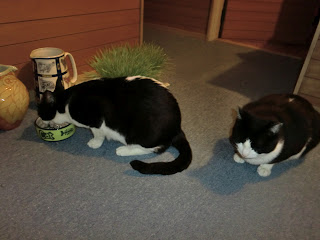 His brother Popo? Showing no signs at all of sibling sadness. Just noisy, playful and demanding - as usual.