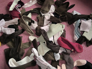 If you are Okaasan: you'll have the above. Three spreading clusters of socks at different points around your room on the carpet. When you go out you have to play Hunt the Missing Sock...endlessly...scurrying from cluster to cluster with more than 60 odd socks in varying shades of pink, beige and brown.